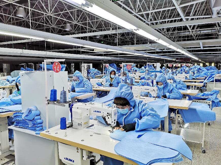银川滨河新区苏银产业园如意服装公司生产车间