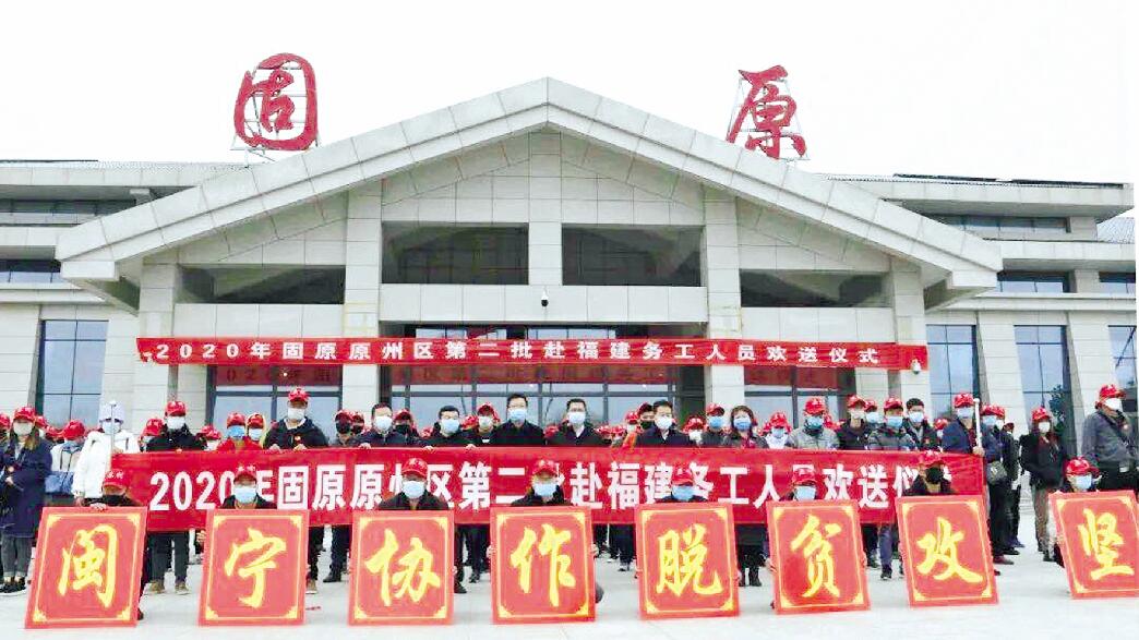 2月26日,红寺堡区人社部门实施“点对点”“一站式”送达服务,组织首批25名人员前往福建务工,截至3月下旬,红寺堡区共组织66名人员赴闽务工,其中建档立卡贫困劳动力32人。仅过了1天,固原市315名务工人员分批乘坐包机赴福建务工,开启了固原市贫困劳动力赴闽转移就业旅程。仅2019年固原市就向福建转移农村劳动力2972人,稳定就业1700余人。