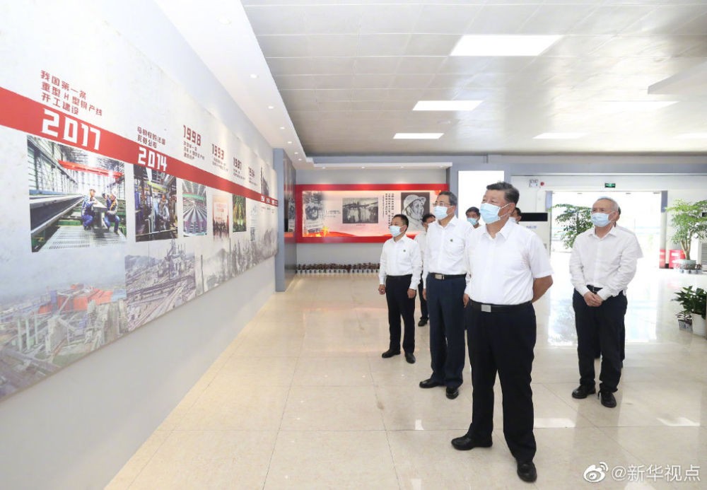 【习近平勉励马钢:在长三角一体化发展中把握机遇顺势而上】19日上午,正在安徽考察调研的习近平总书记走进中国宝武马钢集团优质合金棒材车间,冒着高温察看生产运行情况,并同劳动模范、工人代表亲切交流。习近平指出,在抗击新冠肺炎疫情过程中,马钢较早复工复产,实现了产量、营销收入同比双升,展现了国有经济的强大韧性。他勉励马钢在长三角一体化发展中把握机遇、顺势而上,特别是要把自身改革发展同长三角一体化发展有机结合衔接,力争在长三角一体化发展中不断发展壮大自己,也为长三角一体化发展作出自己的贡献。(文字记者:张晓松 摄影记者:鞠鹏 王晔 燕雁)